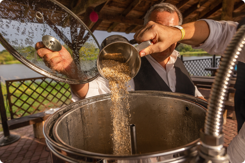 - Selekcja surowców (Sensoryka): Uczestnicy fizycznie dobierają składniki – oceniają zapach chmieli, smak słodów i dodatków, biorąc pełną odpowiedzialność za przyszły profil aromatyczny swojego trunku.