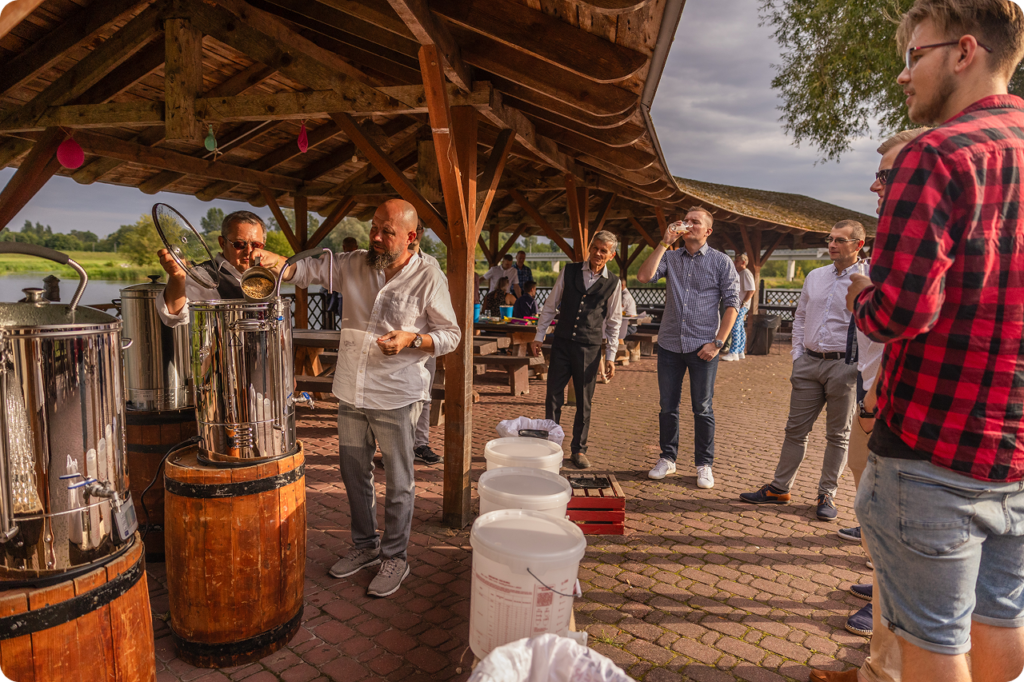 - Warsztat Brandingowy (Naming & Design): W czasie, gdy piwo „pracuje”, grupa przechodzi do sfery kreatywnej – wymyśla nazwę dla swojej marki i projektuje unikalną etykietę, która ma oddawać ducha ich zespołu.